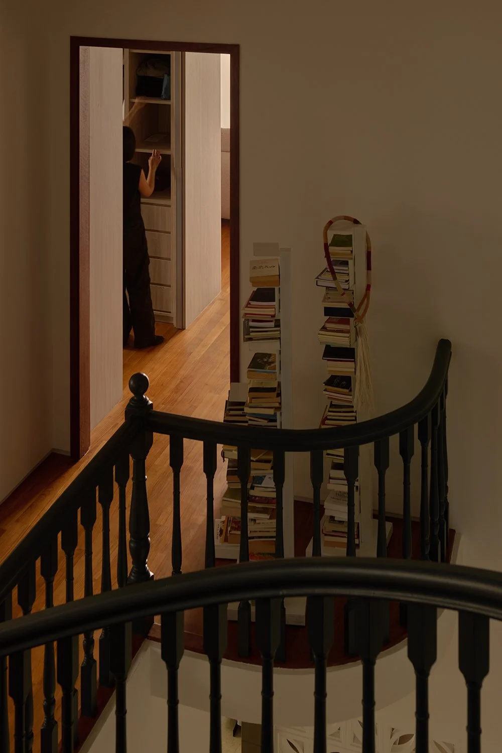 Designed by Pimenta’s atelier, Objkt Studio, not only does it display the couple’s vast book collection and a few of their art pieces, some of its lower shelves are dedicated to their toddler’s books, which are within his reach.