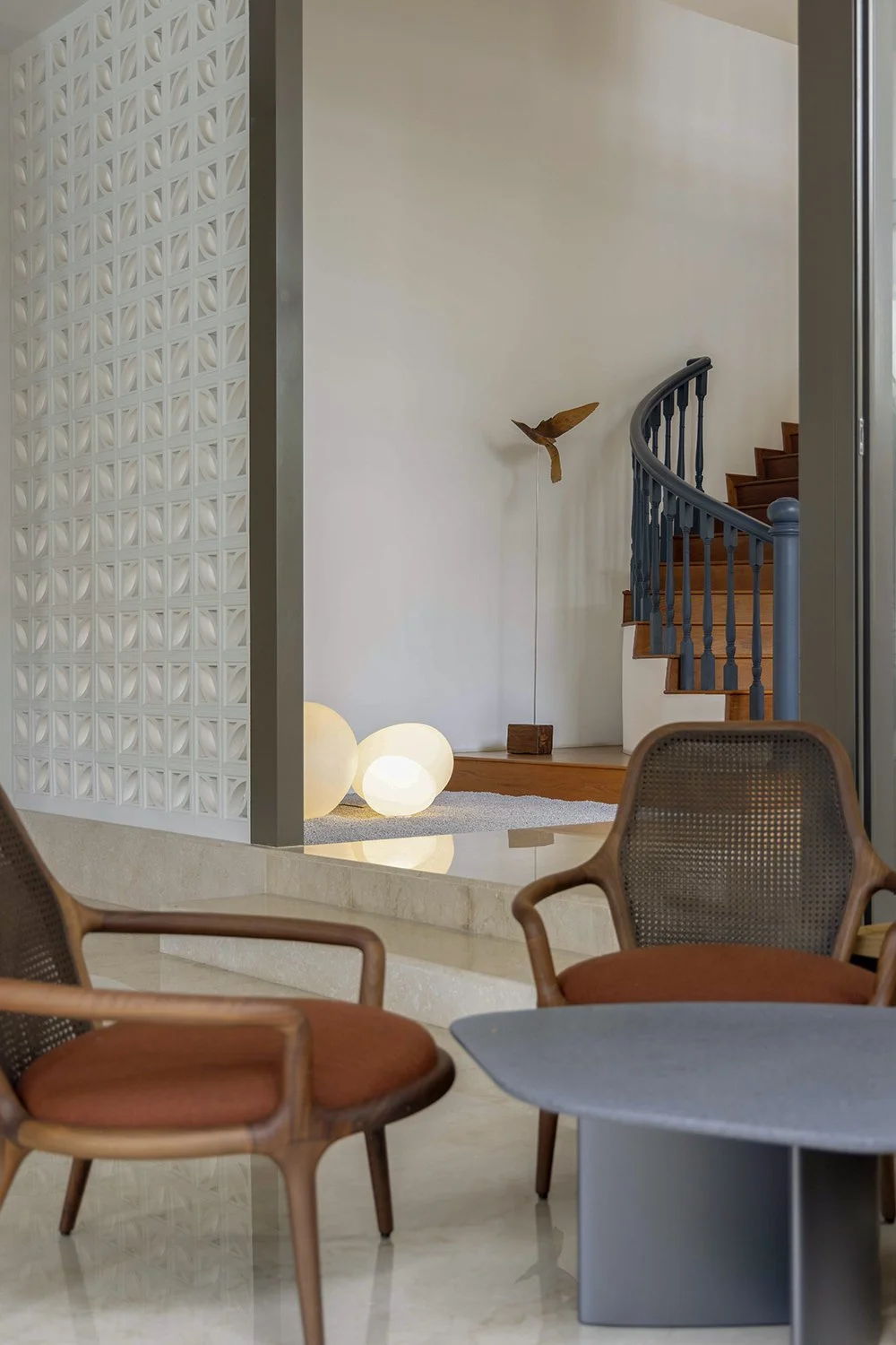 Breeze blocks (known in Brazil as cobogo) – very important features in Brazilian architecture – are incorporated on the ground floor as a key design element and privacy shield for the stairs.